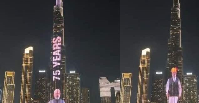 प्रधानमंत्री नरेंद्र मोदी के 75वें जन्मदिन पर दुनियाभर के नेताओं ने उन्हें बधाई दी. इस दौरान दुबई में दुनिया की सबसे ऊंची इमारत बुर्ज खलीफा पीएम मोदी की तस्वीर से जगमगा उठी. बुर्ज खलीफा पर उन्हें “हैप्पी बर्थडे” लिखकर विश किया गया.