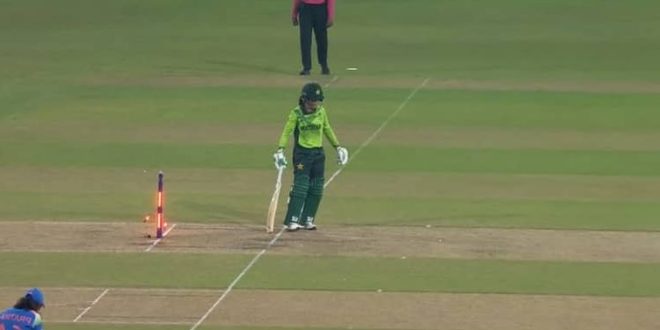 यह घटना पाकिस्तानी पारी के चौथे ओवर की आखिरी गेंद का है. क्रान्ति गौड़ गेंदबाजी कर रही थीं, उनकी गेंद मुनीबा अली के पैड पर लगी इसलिए टीम इंडिया ने LBW की अपील कर दी. अंपायर ने उन्हें नॉट आउट करार दिया, लेकिन इसी बीच मुनीबा अपनी क्रीज से बाहर खड़ी थीं. उनके पैर क्रीज से बाहर ही थे, लेकिन उनसे बैट जमीन पर लैंड करवाने में देरी हो गई.