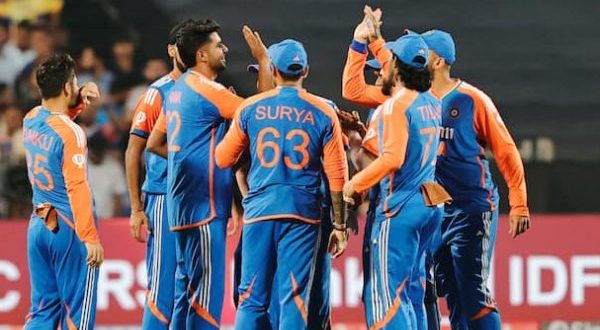 सूर्यकुमार यादव (कप्तान), शुभमन गिल (उपकप्तान), अभिषेक शर्मा, तिलक वर्मा, हार्दिक पांड्या, शिवम दुबे, अक्षर पटेल, जितेश शर्मा (विकेटकीपर), जसप्रीत बुमराह, अर्शदीप सिंह, वरुण चक्रवर्ती, कुलदीप यादव, संजू सैमसन (विकेटकीपर), हर्षित राणा और रिंकू सिंह