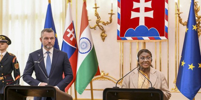 ब्रातिस्लावा: स्लोवाकिया के राष्ट्रपति पीटर पेलेग्रिनी ने कहा कि उनका देश संयुक्त राष्ट्र सुरक्षा परिषद (यूएनएससी) में स्थायी सदस्यता के लिए भारत के प्रयास को अपना “पूर्ण समर्थन” देता है। स्लोवाकिया के राष्ट्रपति ने यहां दो-दिवसीय राजकीय यात्रा पर पहुंचीं राष्ट्रपति द्रौपदी मुर्मू से मुलाकात के बाद एक बयान में कहा, “भारत के साथ हम भी दुनिया के बहुपक्षीय कामकाज के प्रमुख समर्थक हैं, और हम अपने अंतरराष्ट्रीय संगठनों के कामकाज का भी समर्थन करते हैं। यह स्लोवाकिया के लिए महत्वपूर्ण है और मैंने कल संयुक्त राष्ट्र महासभा के पूर्व अध्यक्ष के साथ बैठक में इस पर जोर दिया है।”