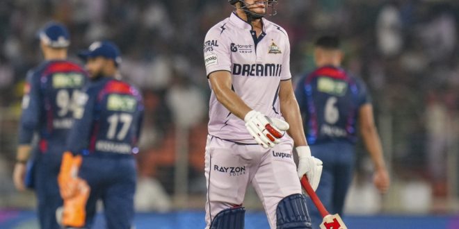LSG के खिलाफ मैच में गुजरात टाइटंस के कप्तान शुभमन गिल ने टॉस जीतकर पहले गेंदबाजी करने का फैसला किया, जो गलत साबित हुआ। लखनऊ ने पहले बैटिंग करते हुए 235 रन बनाए, जिसके जवाब में गुजरात की टीम 202 रन बना पाई। गुजरात के लिए साई सुदर्शन और शुभमन गिल अच्छा प्रदर्शन नहीं कर पाए। इन दोनों प्लेयर्स ने शुरुआत तो सही की, लेकिन उसे बड़ी पारी में नहीं बदल पाए। सुदर्शन ने 21 रन और गिल ने 35 रन बनाए। इसके बाद नंबर तीन पर उतरे जोस बटलर भी 33 रन बनाकर पवेलियन लौट गए। अंत में शेरफेन रदरफोर्ड और शाहरुख खान ने अच्छी बल्लेबाजी की। शाहरुख ने 57 रन बनाए, लेकिन ये प्लेयर्स टीम को जीत नहीं दिला पाए। विलियम ओ रुर्के ने तीन विकेट हासिल किए।
