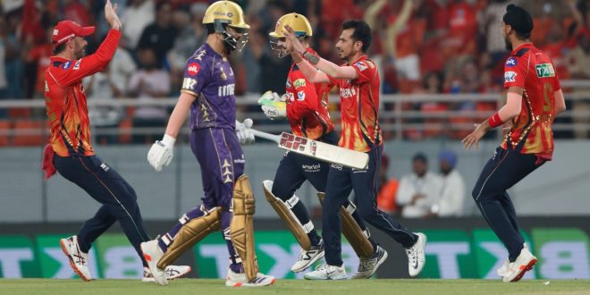 पंजाब के मामूली स्कोर का पीछा करते हुए कोलकाता के बल्लेबाज भी संघर्ष करते नजर आए। पहले 2 ओवर में कोलकाता के सलामी बल्लेबाज सुनील नरेन और क्विंटन डिकॉक पवेलियन लौट गए। इसके बाद कप्तान अजिंक्य रहाणे और अंगकृष रघुवंशी ने मोर्चा संभाला और स्कोर को 62 रन तक ले गए। इसके बाद पंजाब के स्पिनर चहल ने अपनी फिरकी का जादू चलाया और रहाणे और रघुवंशी को अपने लगातार 2 ओवर में चलता कर दिया। इसके बाद वेंकटेश अय्यर 11वें ओवर में मैक्सवेल का शिकार बने। कोलकाता की आधी टीम 74 रन के स्कोर पर पवेलियन लौट चुकी थी।